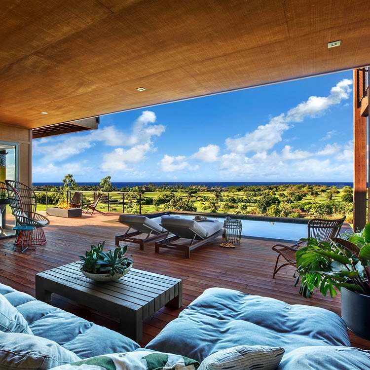 This deck feels expansive and peaceful, like it was made to slow your breathing the moment you step onto it. The clean wood flooring and simple furniture let the view take center stage without distraction. I love how the low seating keeps everything relaxed and grounded. It feels like the kind of space where mornings start quietly and afternoons fade into golden light. You can almost imagine lying back, listening to the breeze, and letting the open horizon do all the talking.