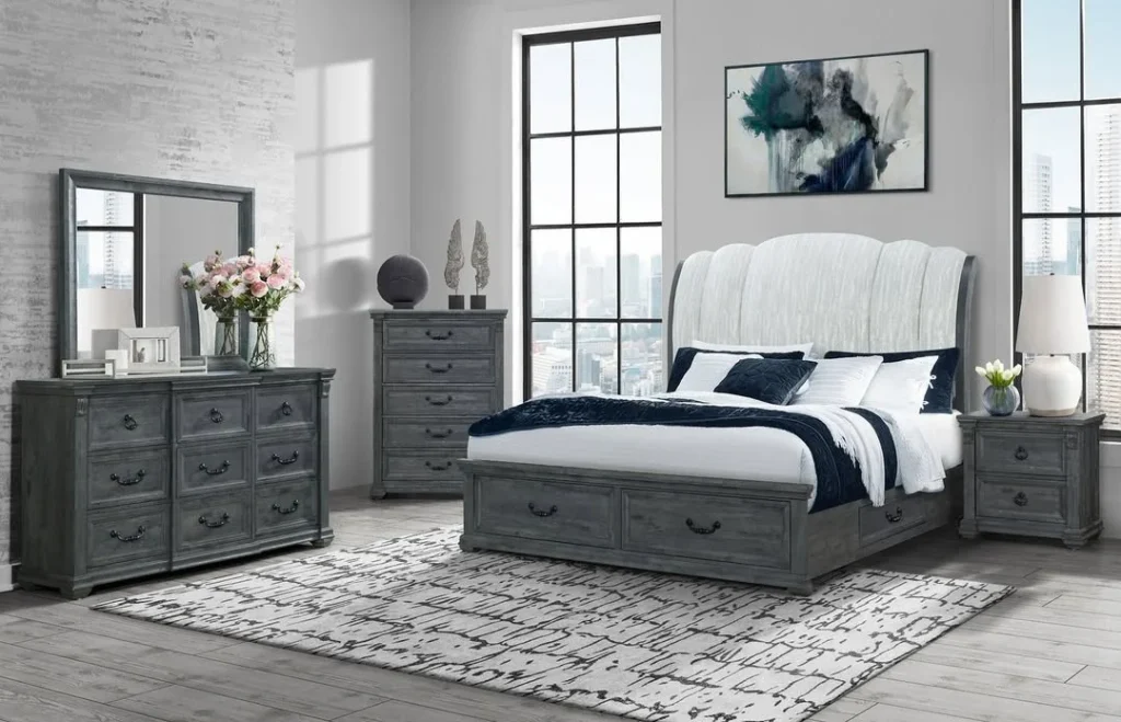 21. Classic Grey Bedroom with Coordinated Wood Furniture