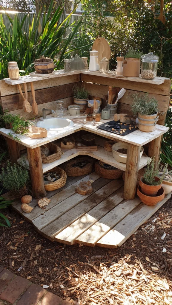 11. Corner Garden Mud Kitchen with Natural Tools
