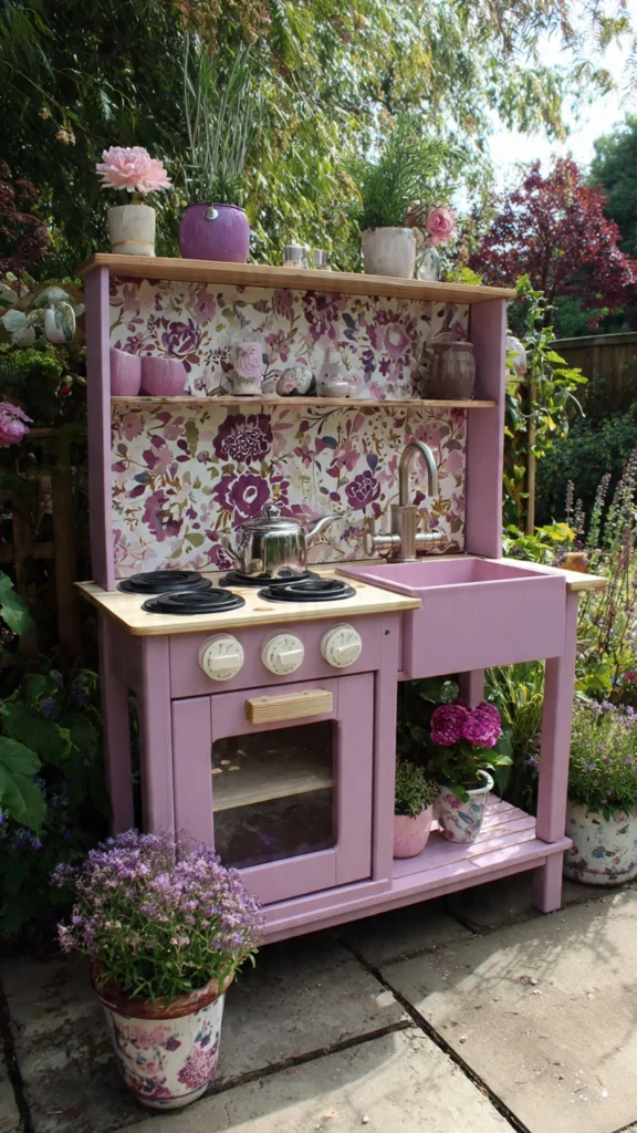 7. Purple & Pink Floral Mud Kitchen