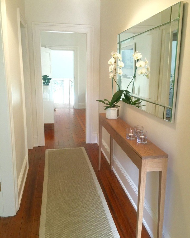 Stick to slim furniture, wall-mounted pieces, and built-in storage. Keeping the floor clear instantly makes the hallway feel wider and easier to move through.